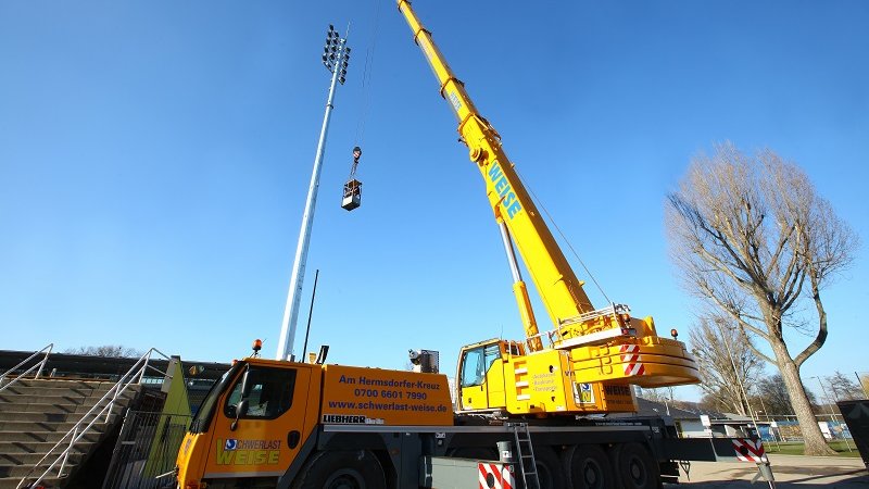 D-I-E Elektro AG steht kurz vor der Fertigstellung der neuen Flutlichtanlage im Ernst-Abbe-Sportfeld